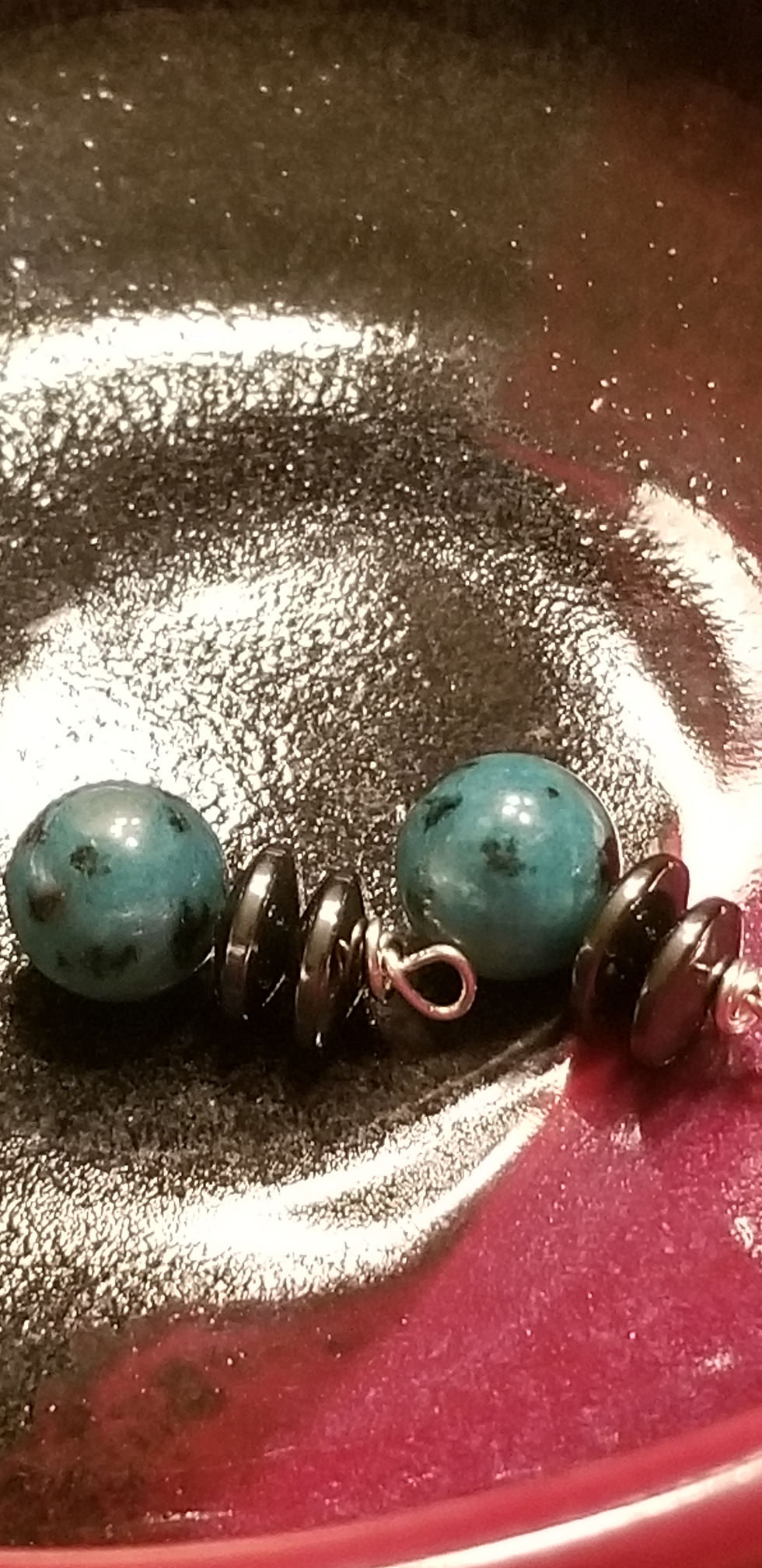 Semi-Precious Turquoise and Picasso Jasper Heishi Beads Hematite Beaded Earrings